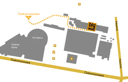 Nejbližší zastávka metra je Českomoravská (nyní v rekonstrukci), která je cca 8 min od stěny. Druhá nejbližší zastávka metra je Vysočanská. Z ní je to pěšky cca 15 min. Na Rekole, kterých je u metra spusta je to cca 5 min.
